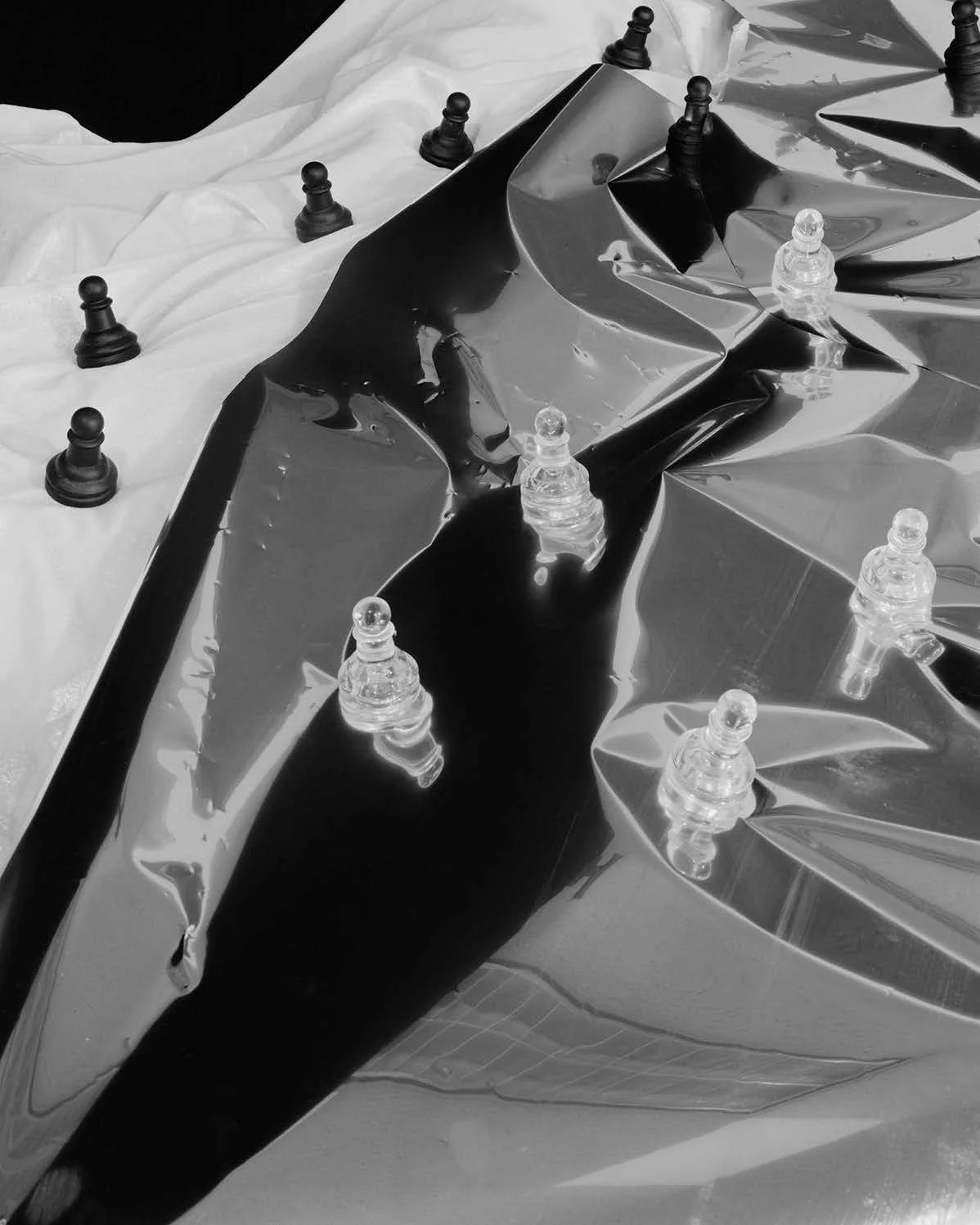 “Aaron Turner’s series Black Alchemy relishes in the magic of the photographic medium—the chemical and physical metamorphoses that occur when processing film and creating prints in the darkroom. It also explores the radical potential of the medium to move between representation and abstraction, and the past and the present. Through projected images and layers of cut paper, Turner’s pictures allow viewers to travel in time, combining archival images of historical figures, such as Martin Luther King, Marvin Gay, Frederick Douglas and others. Yet, Turner’s series also challenges viewers to move beyond any easy narrative around history, representation, and identity. In doing so, Black Alchemy also recalls the writings of contemporary theorist Fred Moten on the metaphysics of Blackness. Like Moten, Turner shifts the emphasis away from the Black subject to the material, historical, and poetic qualities of blackness in all of its manifestations, from historical figures to black-and-white photography itself. Turner’s evocation of the magic also echoes Barbara Fields and Karen Fields’s conception of “racecraft”, which argues that race, an abstract taxonomy not based on biology, is conjured through the material processes of racism. Turner’s practice exists beyond the photographic print, comprising pedagogy and archiving as well. In 2014, shortly after initiating his Black Alchemy series, he created The Center for Photographers of Color. Through all aspects of his work, Turner is creating spaces to acknowledge, share, and build on the work of his predecessors and peers.”