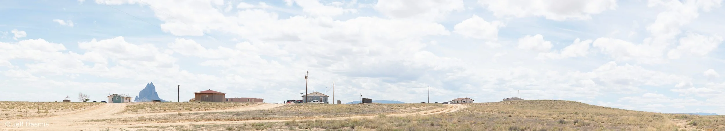 Shiprock explores Tsé Bitʼaʼí or “Rock with Wings”—a volcanic rock formation in northwestern New Mexico—as it is seen by the Diné (Navajo) people who live in its shadow. Deemie’s series reflects on the connection between land and identity, capturing moments where modern existence meets enduring landmark.